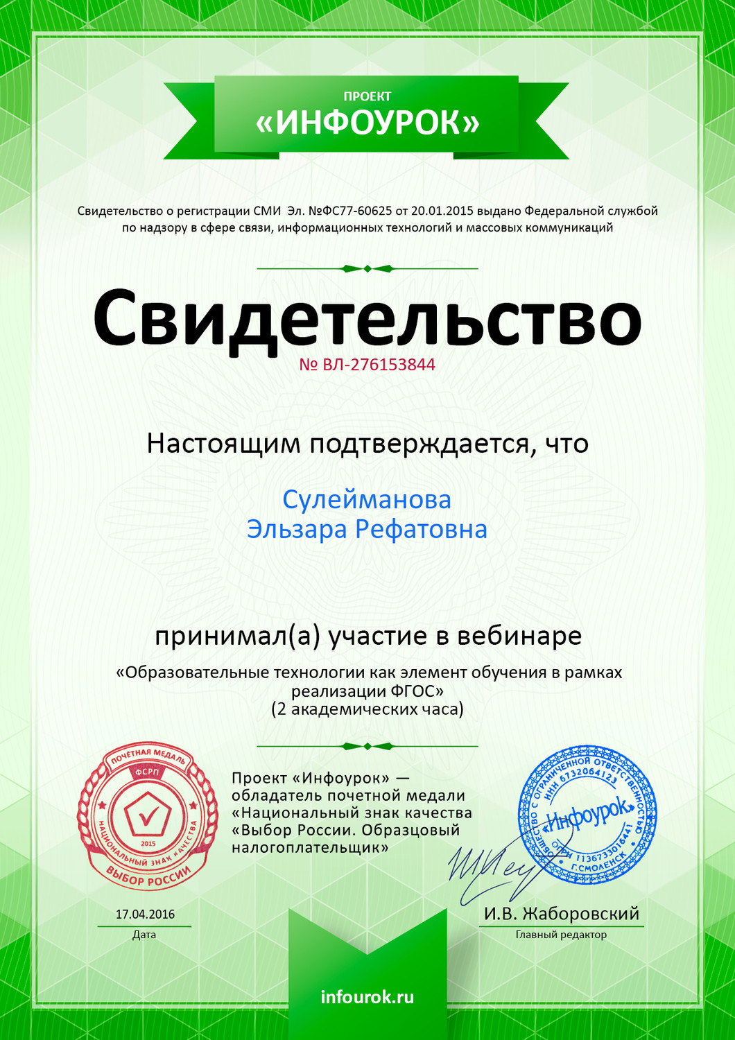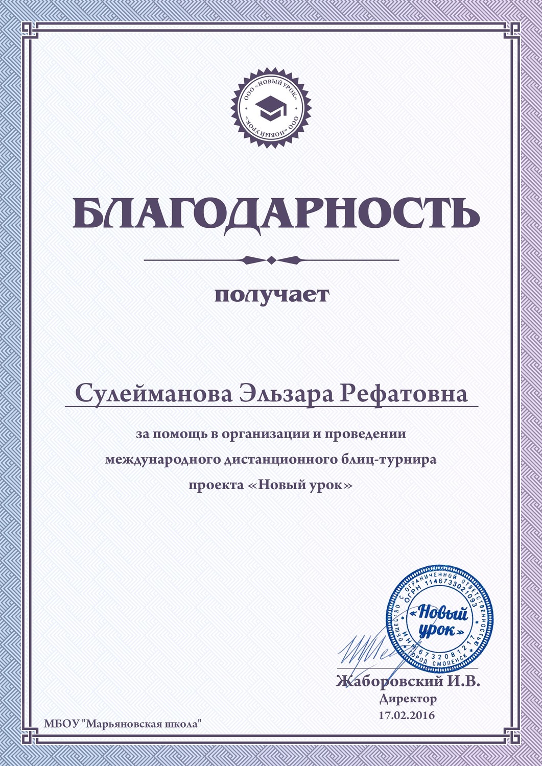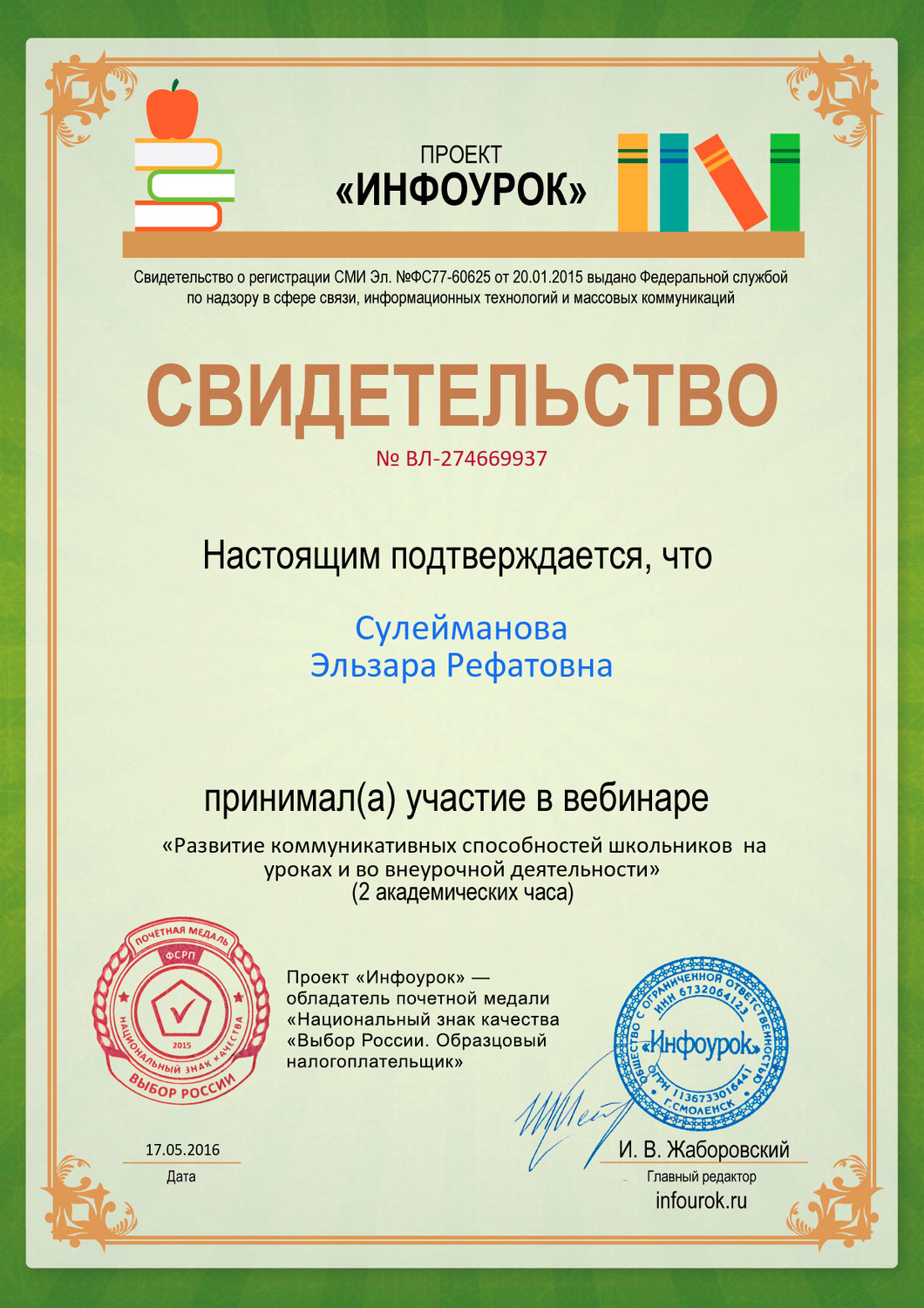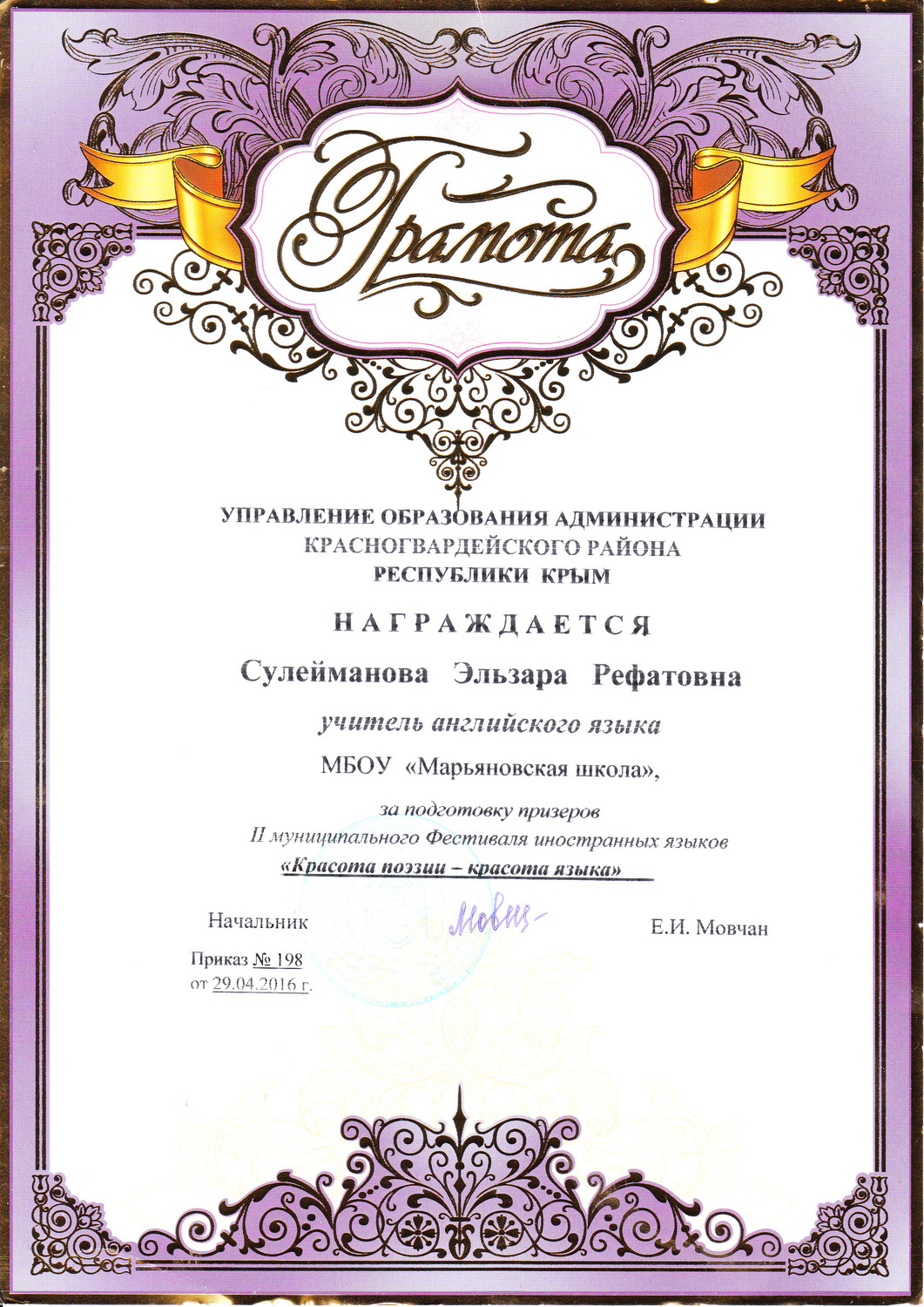Сулеймановой Эльзары